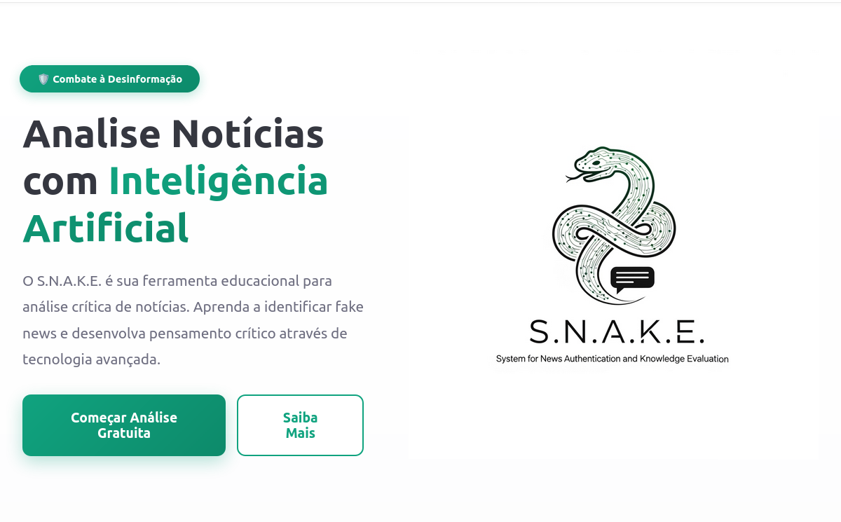 S.N.A.K.E. is an AI-based assistant designed to strengthen digital literacy and combat misinformation in real time. The tool goes beyond traditional fact-checking by acting as a tutor that teaches users how to critically analyze information. With a focus on Portuguese-speaking audiences, S.N.A.K.E. aims to empower society to recognize and confront fake news.